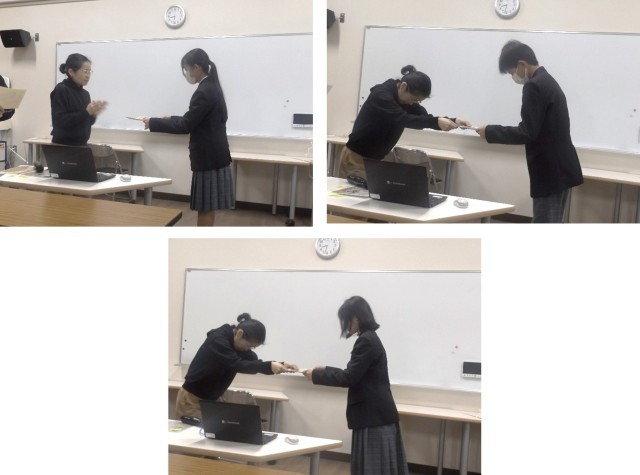 1年生百人一首大会の表彰式