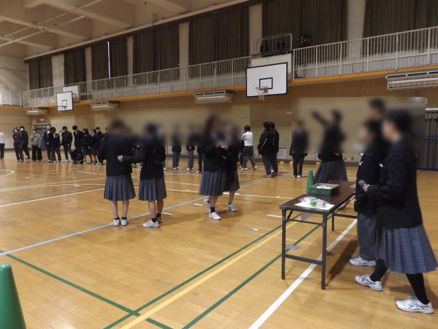 5・6時間目を使って、1年生のレクリエーション大会を実施しました。体育委員と学級代表が連日放課後、レクレーション大会の立案・準備を行い、4つのプログラムを考えて、進行も行いました。どの競技も楽しく、大変盛り上がった大会になり、体育館中に1年生の声が響いていました。