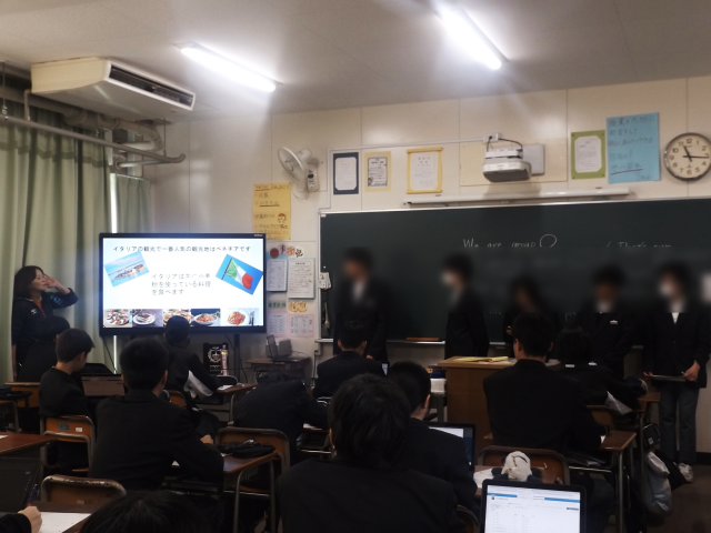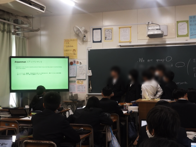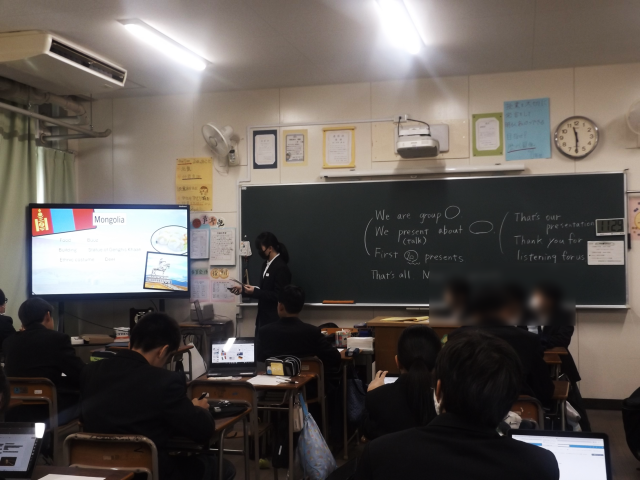 本日の英語では、1年間の学習の集大成として、これまで学習した英語を使ってプレゼンテーションをしました。