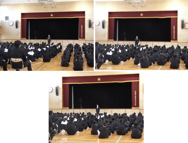 次に、生活指導部長の木戸先生より、春休み中に困りことがあったのであれば、すぐに先生に相談すること、交通ルールが変わったので必ず確認して守ることなどを話されました。