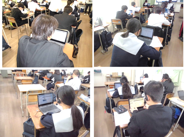 本日の2時間目、3時間目に3年生では、全国学力学習状況調査の英語(話すこと・書くこと・聞くこと)を実施しました。