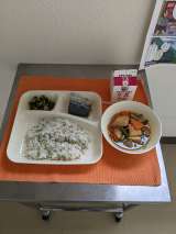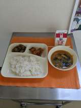 【本日の献立】 鶏肉のてり焼き かぼちゃのみそ汁 なすのそぼろいため ごはん 牛...