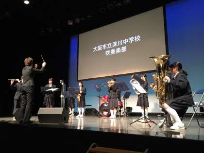 わが淀川中学校吹奏楽部はそのコンサートのオープニングをかざる演奏にお声掛けをいただき参加しました。吹奏楽部員の中にはグランフロントが初めての生徒もいて、とてもきれいでびっくりしていました。プロの歌手の方たちも立たれる舞台に立ち一生懸命演奏していました。緊張もしたでしょうが、良い経験になったのではないでしょうか。