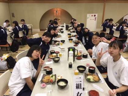 お腹いっぱいになりました。13時15分、選択別体験ごとにバスに乗車し、出発しました。選択別体験の内容は、それぞれジップライン、マウンテンバイク、シャワークライミング、クラフト体験です。