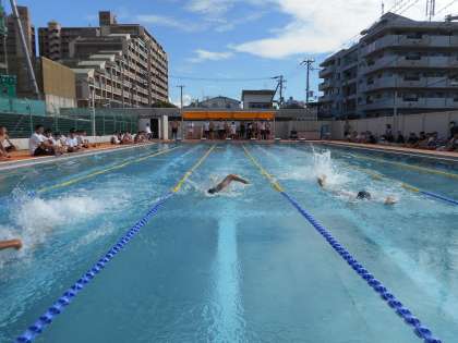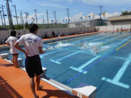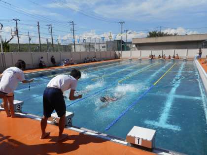 9月3日(火)午後〜3年生、4日(水)午前〜2年生、午後〜1年生の順で水泳大会を行いました。