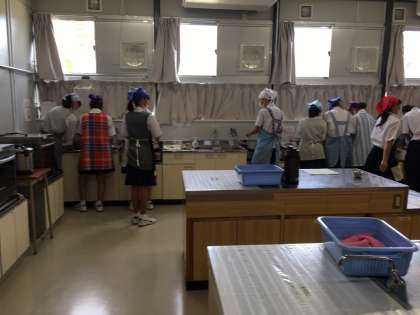 今日は2年3組が調理実習を行いました。(1組は昨日、2組は来週実施予定です。)