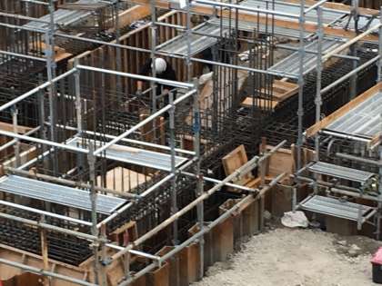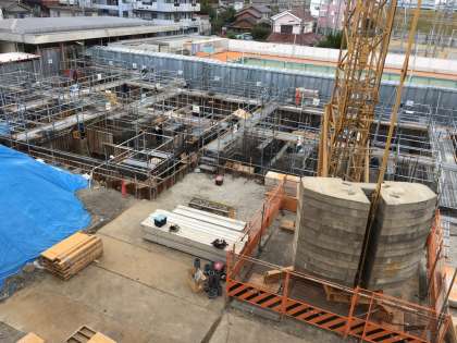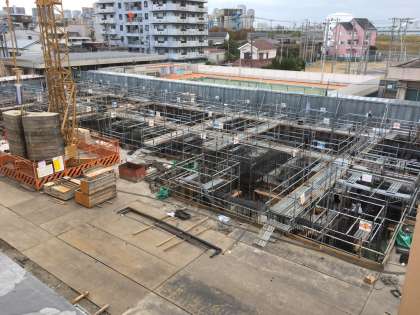 久しぶりに東館の3階の廊下から西館建て替え工事の現場を見てみると、ずいぶん様子が変わっていてびっくりしました。西館が建っていた敷地一面に無数に鉄筋が打ち込まれています。その重さは合計70,5トンだそうです。鉄筋の周りを板で囲いコンクリートを流し込むのだそうです。まるで巨大な剣山が横たわっているようです。来週末には、コンクリートを流し込む作業に入る予定だそうです。少しずつですが、新しい西館の形ができていきます。