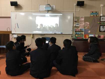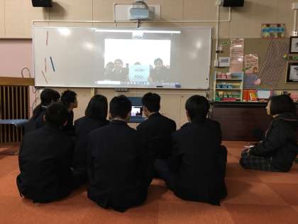 本日15時30分〜図書室において、生徒会役員がネパールの中学生とweb交流を実施しました。習い覚えた英語を駆使してやり取りをしていました。ときには、コーディネーターさんの力を借りながら、お互いに質問をし、質問に答えていました。先週の月曜日に事前学習をし、今日は1回目のweb交流でした。来週2回目の交流があります。