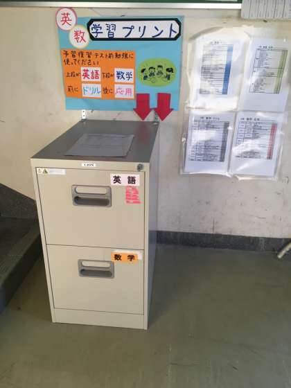 3枚目の写真は3年生の校舎(東館)3階にある3年生向けの自主学習プリントのコーナーです。いつでも必要な時に必要なところのプリントを出していただけます。大いに利用して勉強してください。