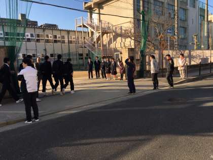 本日は早朝より淀川地区更生保護女性会の方々にお越しいただき、あいさつ運動を実施しました。いつもは全校集会の準備で参加できない生徒会の役員のみなさんも一緒に大きな声で挨拶をしました。
