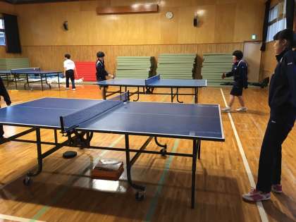 本日午後から活動していたのは、卓球部だけでした。外はしぐれて寒いけれど、なんだかほのぼのとした、温泉卓球?を思わせるような生徒の様子でした。