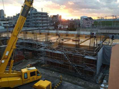 西館の建て替え工事が急ピッチで進んでいます。あっという間に2階にができています。ちょっと見ない間に景色が変わっています。これからまた鉄筋を入れたり、つないだりする工事が始まります。