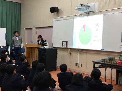 整備委員会から「歯と口の健康」について、2学期にとったアンケートの結果報告もありました。司会も整備委員が行っていました。1年整備委員会は毎月「食育」についても取り組みを行っています。頑張っています。