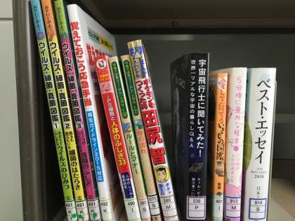 今日は、プレハブ校舎で移動図書館が開かれる日です。先月までとは代わり、新しいラインナップになっていました。目を引いたのが、『愛して育てるいきもの図鑑』『のぞいてみよう ウィルス・細菌・真菌図鑑』1〜3。最近ブームになっている事典・図鑑、「新型図鑑」と言われているようですが、従来の「動物」「昆虫」「乗り物」などとジャンルごとの分類や詳細な解説に主眼が置かれたものではなく、ジャンルを横断した比較や、写真、イラストの大胆なレイアウトなどを特徴とするものです。小学館の「NEO」シリーズや「ざんねんないきもの事典」などのヒットにより、面白い図鑑が出てきているようです。