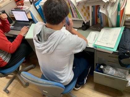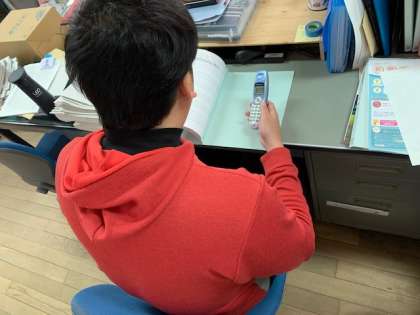 健康観察の最終日である今日は、3年生の先生方が電話をかけています。