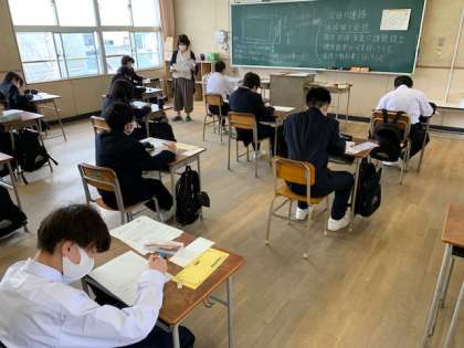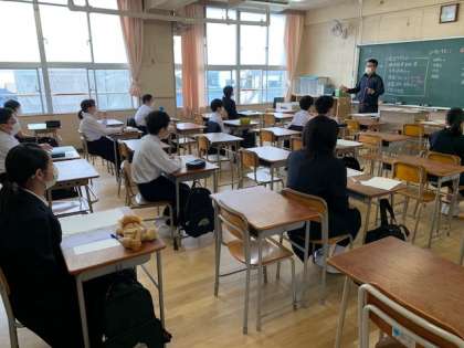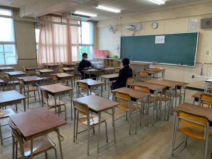 1年生は昨日の1組に引き続き、透明の仕切りを挟んでの教育相談を行っています。
