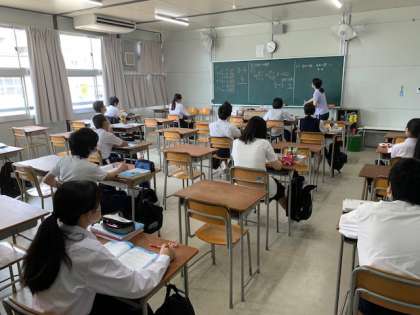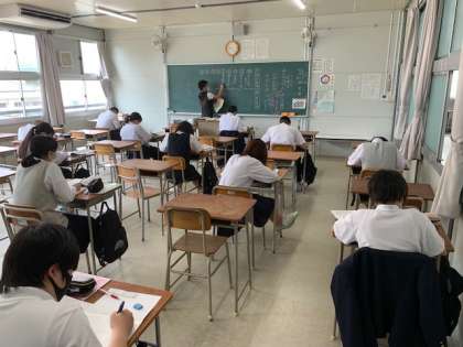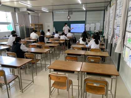 感染防止のため、対話的な授業はまだできませんが、しっかりと話を聞いていたり、メモを取る姿が印象的でした。