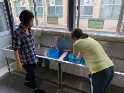 会議までのわずかな時間に、手際よく消毒を済ませます!