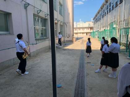 2枚目…吹奏楽部 1年生の前で披露しています