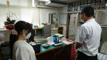 4時間目、teamsを使って校長室と各教室をつなぎ、オンラインによる終業式を行いました!