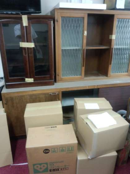 2学期から使う新校舎への移動に備えて、準備が始まっています。職員室や校長室も新校舎にうつります。多くの荷物の梱包が行われてます。