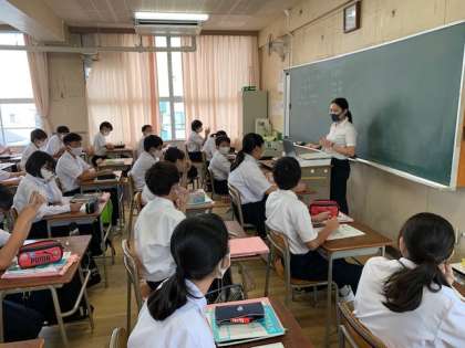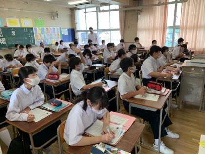 4時間目、1−2で教育実習生による研究授業が行われました。