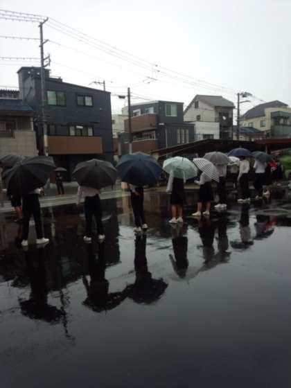 生徒会のみなさんのあいさつ運動が行われています。3年生は学戦集会があります。