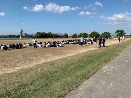 グラウンドがまだ使用できないため、毛馬のグラウンドをお借りして行いました。