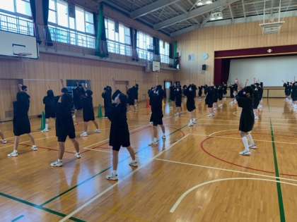 2年生が明日の「学年種目 ソーラン節」の発表に向け、朝練を行っています!