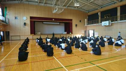 1・2年生は明日の校外学習に向けて、事前指導を行いました。