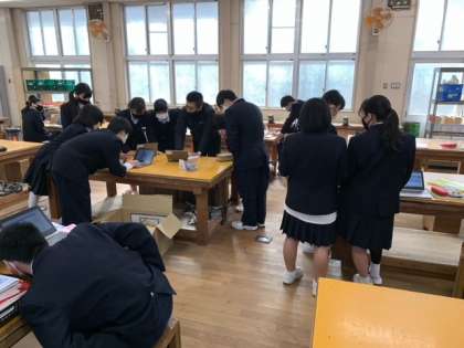 技術では、導入されたばかりの1人1台端末を使い、プログラミングの授業を行っていました!