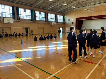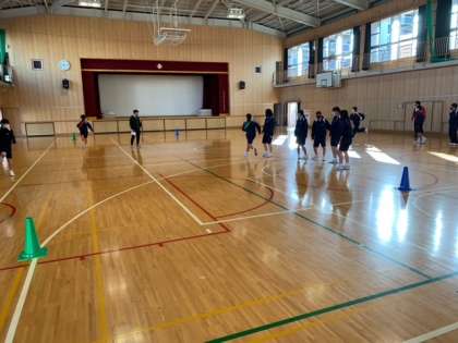 本日はグラウンド状況が悪いため、体育館にて15分ずつ、タスキの受け渡しの練習をしました!
