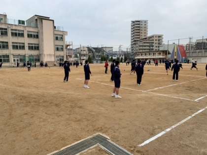 2年生は1限、運動場でスポーツ大会の練習を行いました!