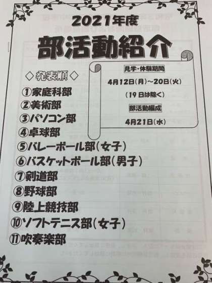 明日は部活動紹介があり、その後20日まで部活動見学週間に入ります!
