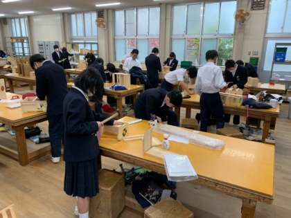 2年2組は2グループに分かれ、それぞれ技術と家庭科を勉強しています!