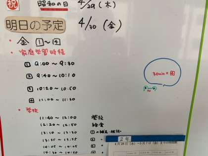 明日は金曜日の1時間目から4時間目の用意を持ってきてください。