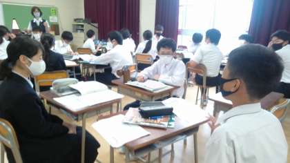 「レタス♪たまねぎ♪トマト♪」のリズムを3人グループになって練習しました。