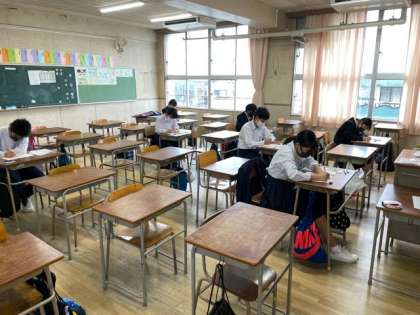 放課後、受験する級ごとに分かれ、英検を行いました。