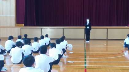 今日は教育実習生によるお話しで、中学校生活の貴重なお話しをしていただきました。