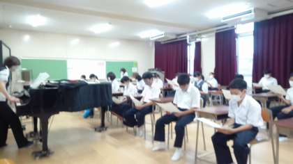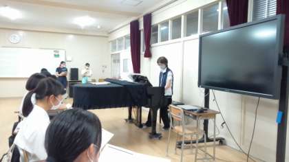 文化祭の合唱に向けて、パートリーダーの人たちが放課後に残って歌の練習をしています。