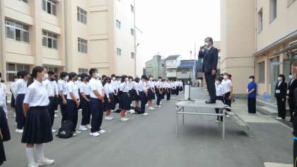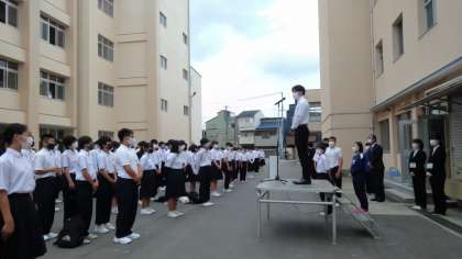 本日は臨時の全校集会で、実習生によるあいさつでした。