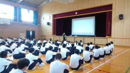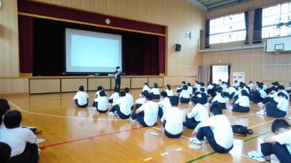 学年主任の城先生より、9月に延期となった、修学旅行についてのお話しでした。