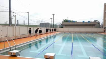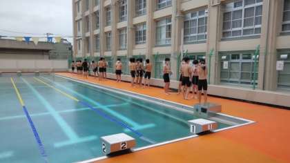 通常、体育は2クラス合同で行っていますが、新型コロナウィルス感染拡大防止のため、今年の水泳の授業は1クラスごとで行います。