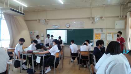 「沖縄基地問題」について、班で調べた内容を班別に発表していました。