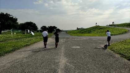 陸上部は、本日も河川敷で朝練を行っています。