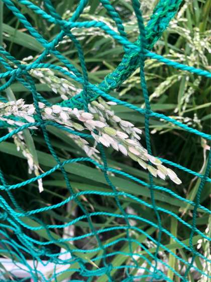 支援学級で育てているお米に鳥被害があったため、以前廃棄した防球フェンスのネットを使用し、対策を行いました!