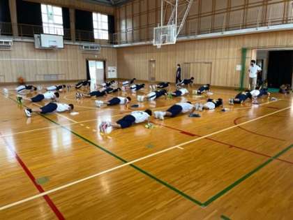 ボールを使った練習の前に、筋力トレーニングを行います!