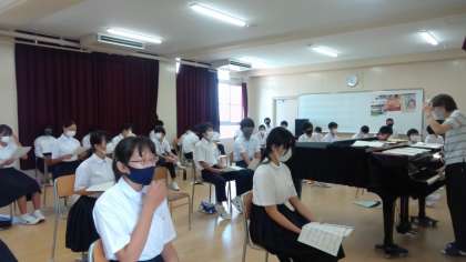 文化祭で発表する、「美女と野獣」の歌を練習していました。