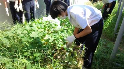 さつまいも畑の雑草を抜いています!