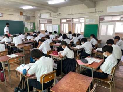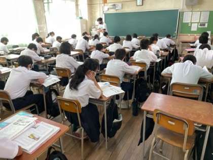 手本の発音を聞いた後、各自で教科書を読み込んでいます。